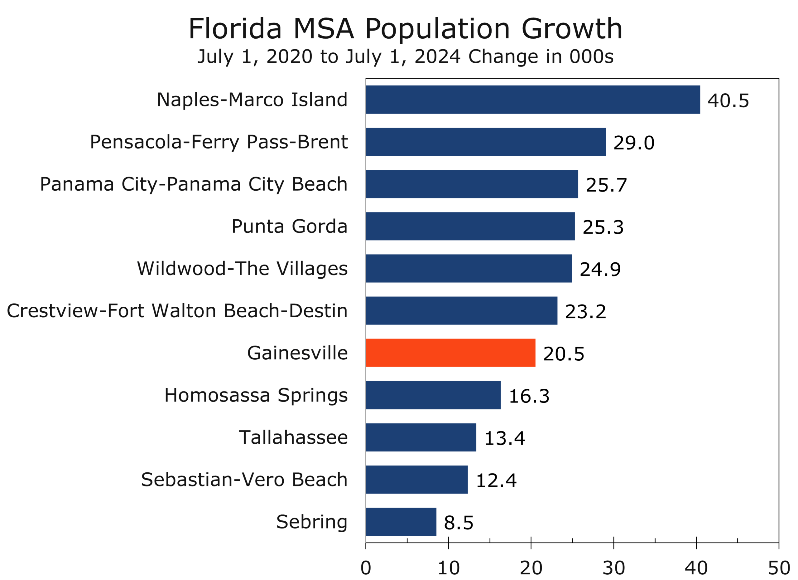 - Healthcare & Education: Anchored by Baptist Health, the Mayo Clinic, UF Health Jacksonville, and Ascension St. Vincent’s, health services added about 7,000 jobs over the past year.